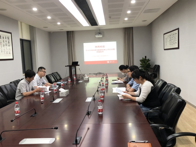 2018年6月20日上午,苏州市清华阳光能源有限公司总经理陈晓刚一行来访苏州大学能源学院能源与材料创新研究院。苏州大学能源学院院长晏成林、党委副书记沙丹丹、副院长彭扬共同出席了此次活动。